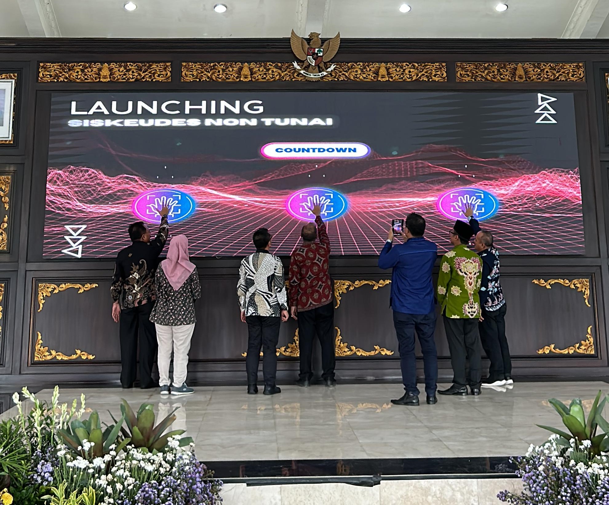 Pj Bupati Jombang beserta Asisten 1 Setdakab Jombang meresmikan Launching Siskudes Non Tunai secara serentak.